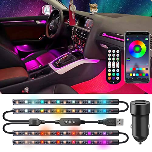 Bil-LED-innerbelysning DC 5 V, USB-anslutning eller med billaddare, ljuslist 5050 LED, med appkontroll, fjärrkontroll, stämningsbelysning i bil