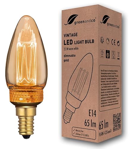greenandco® dimbar Vintage Design LED-lampa i retrostil för stämningsbelysning E14 C35 Edison-lampa, 2,3W 65lm 1800K extra varmvitt 320° 230V flimmerfri