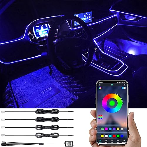 TABEN Bil Stämningsbelysning APP-styrd Dekorativ Ljuslampa DIY-renovering Flexibelt Optiskt Fiberrör 64 Färger Invändig Fotbrunnsbelysning Atmosfärsbelysning 1W DC 12V 8m