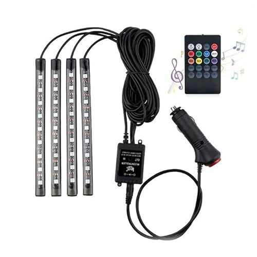 VoltShine 4 x 0,225 m RGB lågspänning LED-remsa för bilar, idealisk för stämningsbelysning och anpassning av fordonsinredning.