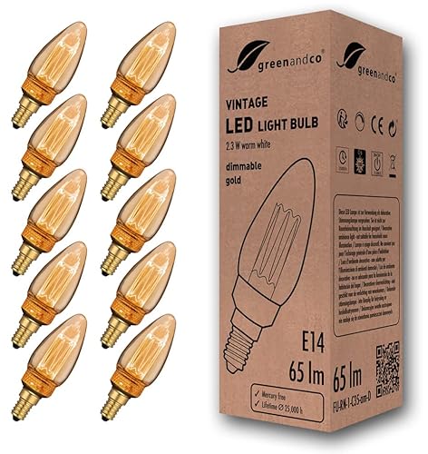 10 st greenandco® dimbar Vintage Design LED-lampa i retrostil för stämningsbelysning E14 C35 Edison-lampa, 2,3W 65lm 1800K extra varmvitt 320° 230V flimmerfri