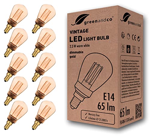 10 st greenandco® dimbar Vintage Design LED-lampa i retrostil för stämningsbelysning E14 ST45 Edison-lampa, 2,3W 65lm 1800K extra varmvitt 320° 230V flimmerfri