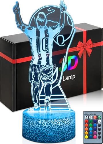 DAHEYMA Fotbollsspelares målfirande 3D-lampillusion, nr 10 argentinsk fotbollsspelare pekar med händerna mot himlen, 16 färger med fjärrkontroll Dimbar nattlampa Stämningsbelysning