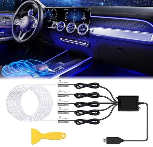 EL-tråd för bil, LED-ljusslinga för interiör, USB, neon, trådlampor, 6 mm sydd kant, glödande, EL-trådlampor för bil, stämningsbelysning, kit, bildekorationer, LED-lampor för bilinredning, 5 m (blå)
