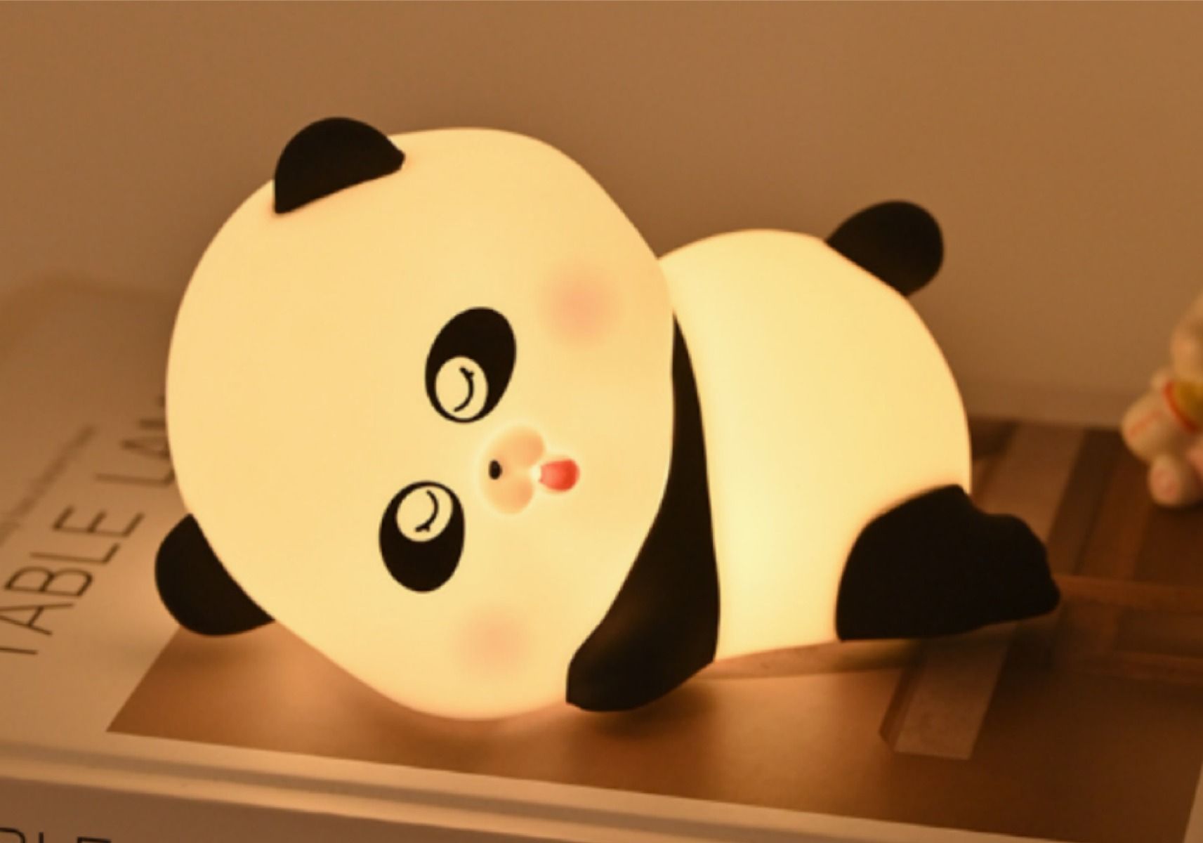 Söt Panda Lampa med Timer, 3 Dimmlingsnivåer, 7 Färger - Barnvänlig Silikon, Touch & Stämningsbelysning för Barnrum