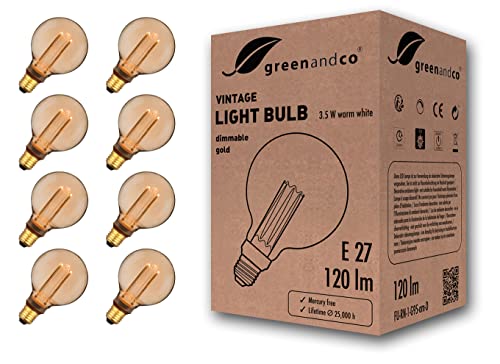 8 st greenandco® dimbar Vintage Design LED-lampor i retrostil för stämningsbelysning E27 G95 Edison-lampor, 3,5W 120lm 1800K extra varmvitt 320° 230V flimmerfri
