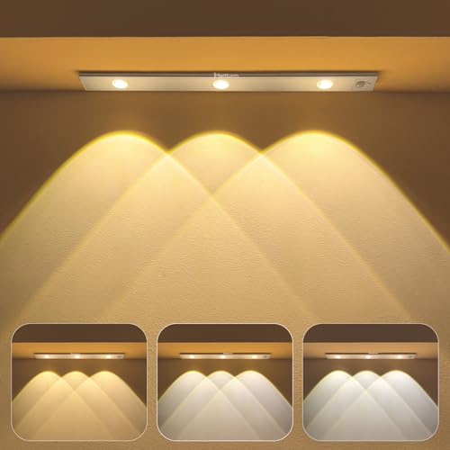 MERTTURM Rörelsesensor skåp stämningsbelysning, 40 cm trådlös skåpbelysning, uppladdningsbar dimbar LED-ljusstång med 3 ljusfärger, magnetisk installation för köksskåp