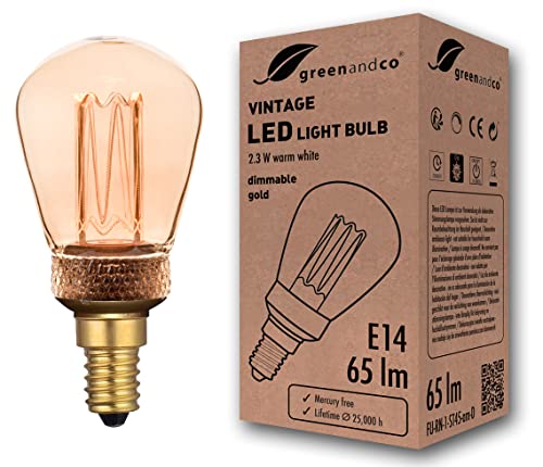 greenandco® dimbar Vintage Design LED-lampa i retrostil för stämningsbelysning E14 ST45 Edison-lampa, 2,3W 65lm 1800K extra varmvitt 320° 230V flimmerfri