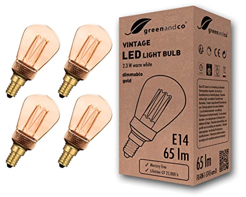 4 st greenandco® dimbar Vintage Design LED-lampa i retrostil för stämningsbelysning E14 ST45 Edison-lampa, 2,3W 65lm 1800K extra varmvitt 320° 230V flimmerfri