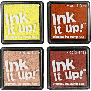 Diverse Stämpeldynor, stl. 40x40 mm, 4 st., gul/terrakotta harmoni