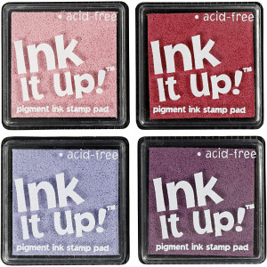 Diverse Stämpeldynor, stl. 40x40 mm, 4 st., rosa/lila harmoni