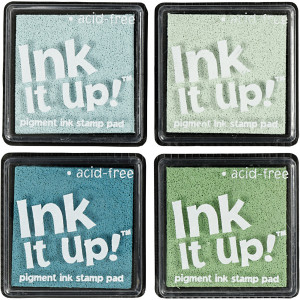 Diverse Stämpeldynor, stl. 40x40 mm, 4 st., grön/turkos harmoni
