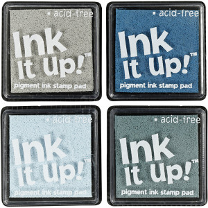 Diverse Stämpeldynor, stl. 40x40 mm, 4 st., blå/grå harmoni