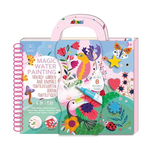 Avenir 6301895 färgspel fantasiträdgård, 4-i-1 aktivitetsbok, gör-det-själv kreativt set med färgbilder, stämplar, stenciler och pusselspel, för barn från 3 år