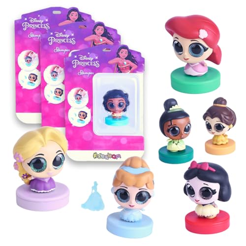 Sbabam FUNNY BOX Disney Princess Stamper, stämplar för barn med Disney-prinsessor Glitter ögondockor med ögon, 3 st, spel för barn från tidningskiosken, Disney prylar av miniprinsessor för present