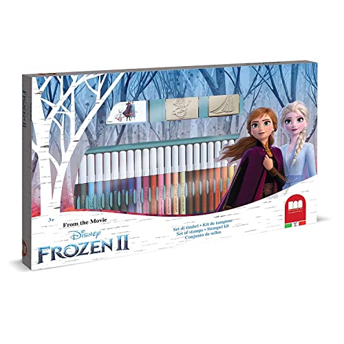 Multiprint set med 3 stämplar för barn och 36 färgade markeringar Disney Frozen 2, tillverkad i Italien, stämpelset för barn, i trä och naturgummi, giftfritt tvättbart bläck, presentidé, Art.57981