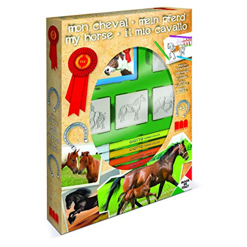 Flertryckslåda 4 stämplar för barn, Cavalli, 100% tillverkad i Italien, användaranpassat stämpelset för barn, i trä och naturgummi, giftfritt tvättbart bläck, presentidé, art.27895