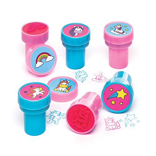 Baker Ross Självfärgande stämplar "Enhörning" för barn för att dekorera pysselprojekt (10 stycken), 22 mm