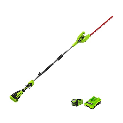 Greenworks G40PHAK2 Batteridriven Stånghäcksax med Delad Axel, 51cm Dubbelverkande Blad, Skär upp till 18mm Tjocka Grenar, 125° Huvudsvängning, 3000 Klipp/min, 40V 2Ah Batteri & Laddare, 3 Års Garanti