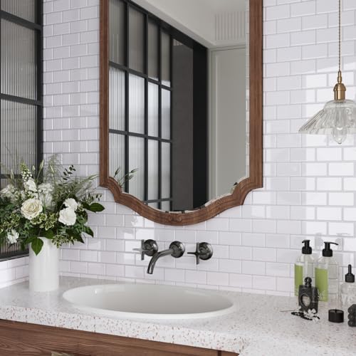 CRE8TIVE Vita självhäftande väggplattor 3D-kakelklistermärken för väggar rektangulära självhäftande plattor för badrum vattentät skala av och klistra fast stänkskydd för kök tvättstuga 30,5 cm x 30,5