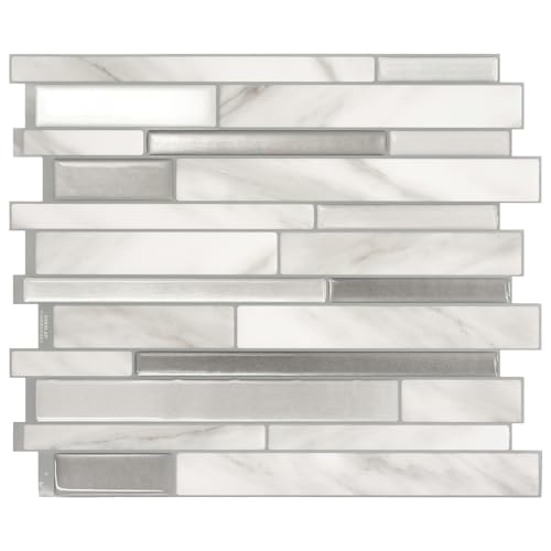 VAOVI Fyrkantiga mosaikplattor självhäftande kök stänkskydd väggplattor, marmor badrum kakel klistermärken öppen spis värmebeständiga duschplattor skala av och klistra fast vattentäta (vitt silver, 10
