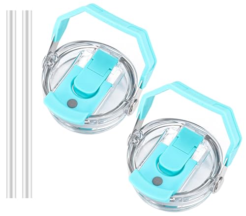 30 oz och 20 oz ersättningslock för Stanley IceFlow rostfritt stål tumlare, 2 st spillsäkert tumlarskydd med handtag och 2-i-1 flippsugrörspip, läckagesäker stänkbeständig (himmelsblå)