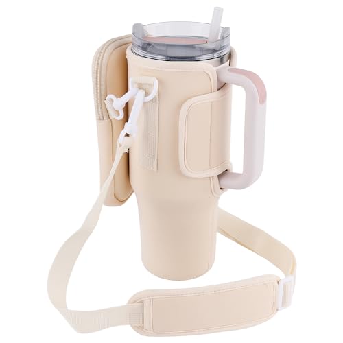 Pgtc Vattenflaskhållare väska för Stanley Quencher tumbler 40 oz, vattenflaska hållare med justerbar axelrem, Stanley Cup tillbehör för vandring resor camping (vit)