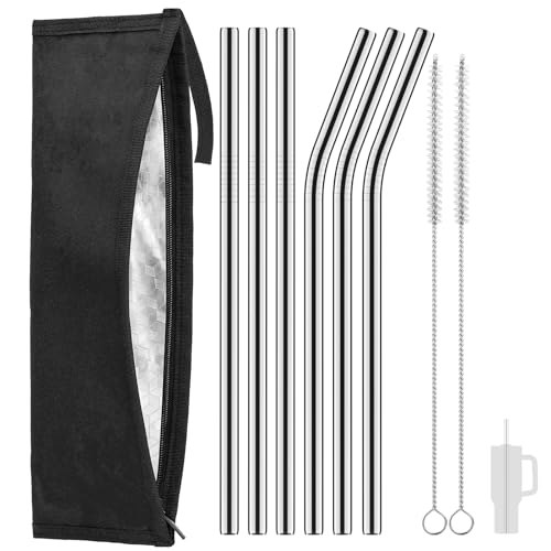 Rierousy 8 stycken sugrör, 31 cm långt, rostfritt stål, återanvändbara, med 2 rengöringsborstar för Stanley Adventure Quencher 80 oz/40 oz kopp