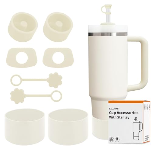 Stanley Cup tillbehör 8 st, inklusive 2 halmskyddskåpor, 2 fyrkantiga spillproppar, 2 runda läckageproppar, 2 st silikonstövel för Stanley Cup 2.0 40/30 oz tumbler och IceFlow (kräm 2.0)