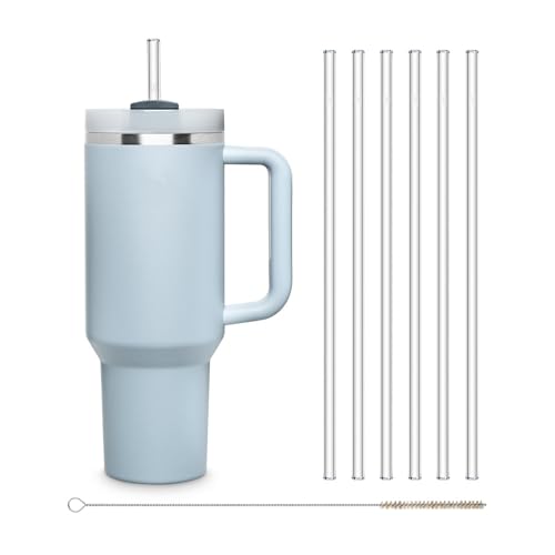 HALM Glasstrån 6x 30 cm långa för Stanley Cup Quencher Tumbler & flaskor upp till 0,5 liter + rengöringsborste diskmaskinssäkra - Återanvändbara sugrör - Glasdrickrör för dryckesflaskor