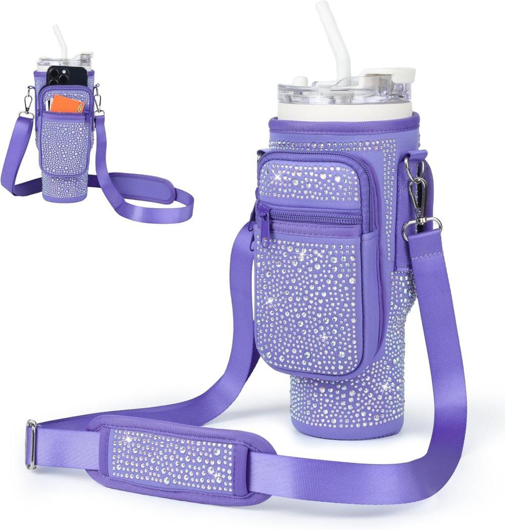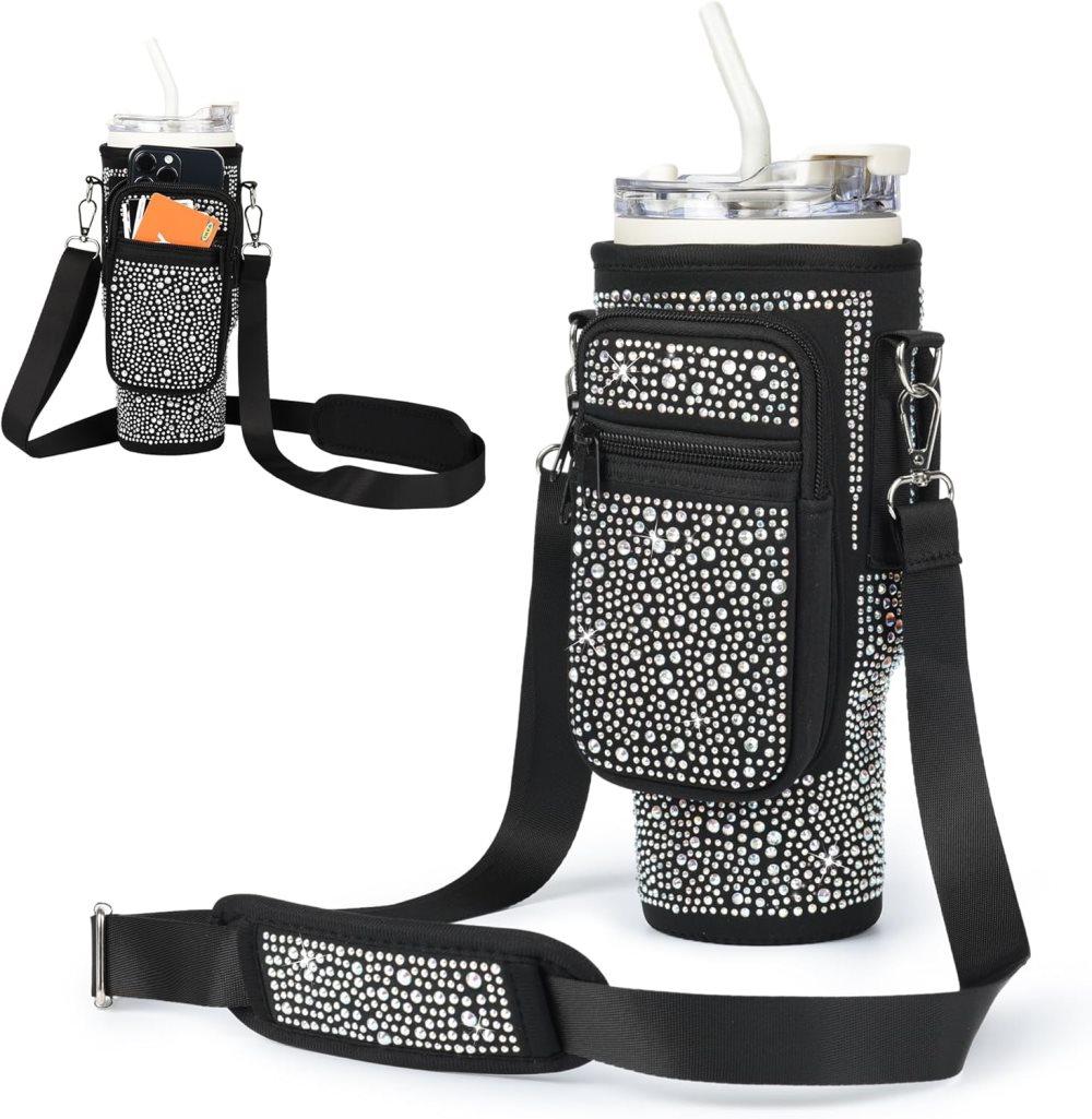 Bling Diamond vattenflaskpåse för Stanley 40/30 oz tumbler med korthållare, med justerbar rem för Stanley Cup-tillbehör