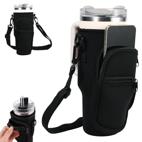 Vattenflaska väska för Stanley Cup 1.2L, flaskhållare för upphängning, justerbar rem, vattenflaskor, bärväska med mobiltelefonfack, perfekt för vandring, löpning och cykling