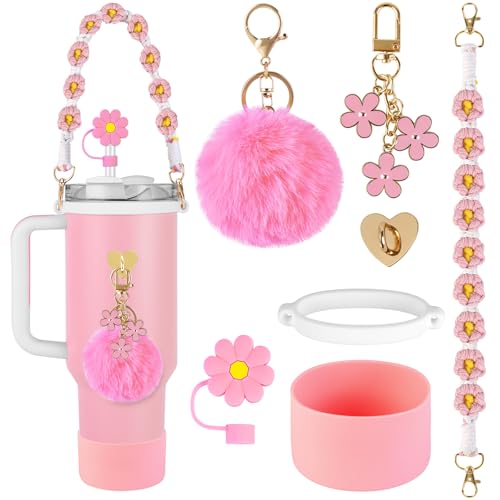 AUAUY Stanley-muggtillbehör, sett med 7, dekorativ vattenflaska, kompatibel med Stanley-kopp, innehåller silikonstövel och halmskydd