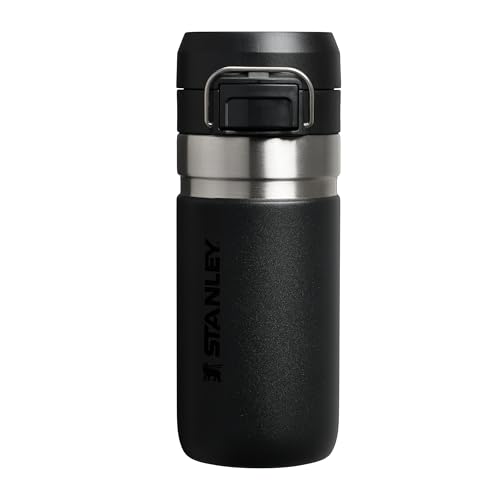 Stanley Quick Flip vattenflaska i rostfritt stål 16 oz – håller kallt i 7 timmar – läckagesäker – BPA-fri termisk flaska – diskmaskinssäker – kopphållare kompatibel – svart 2.0