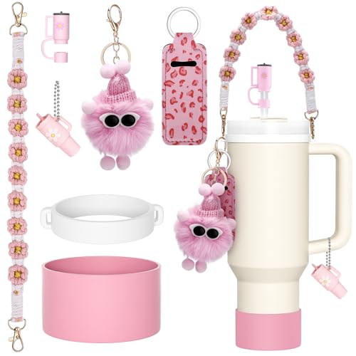 Yomisee Stanley Cup tillbehörsset, inklusive Stanley Cup sugrörsskydd, siliocne Stanley Cup stövlar, vattenflaska handtag remmar, Stanley Cup tillbehör för Stanley Cup 800–1100 ml (rosa)