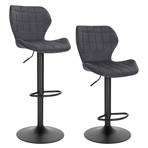 WOLTU Barpall Set med 2 höjdjusterbara pallar 60-82 cm 360° Vridstol med ryggstöd Fotstöd Barstol Sammetsmetall Ståpall Mörkgrå BH324dgr-2