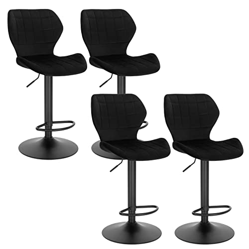 WOLTU barstol set med 4 höjdjusterbara pallar 60-82 cm 360° snurrstol med ryggstöd fotstöd barstol av sammetsmetall ståpall svart BH324sz-4