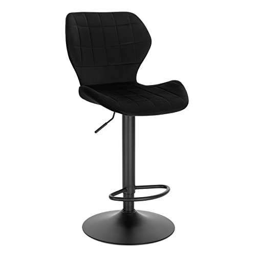WOLTU barpall set med 1 höjdjusterbar pall 60-82 cm 360° snurrstol med ryggstöd fotstöd barstol av sammetsmetall ståpall svart BH324sz-1