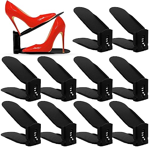 BEYAOBN 10 st justerbart skoställ - stapelbar organisatör och förvaring - utrymmesbesparing - slitstarkt och lättskött PP-material (svart)