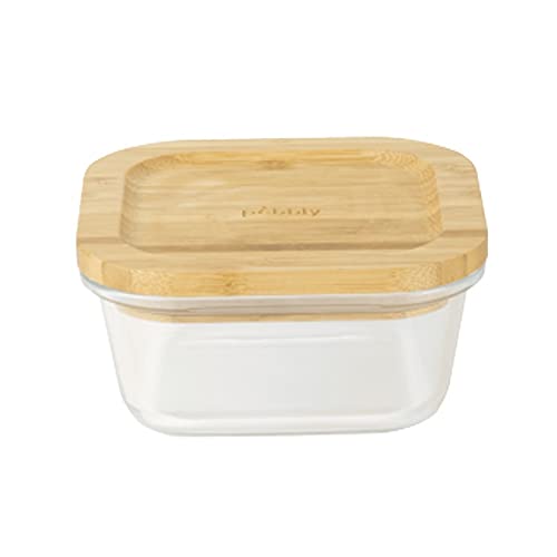 Pebbly - hög glaslåda med bambu lock - fyrkantig - 520 ml - stapelbar, för förvaring av torrfoder, spannmål, mandel..