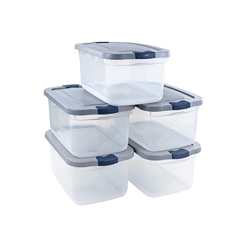 Gummimaid Roughneck Clear 50 Qt/12 Gal förvaringsbehållare, förpackning med 5 med låsande grå lock, synlig bas, robust och stapelbar, bra för förvaring och organisation