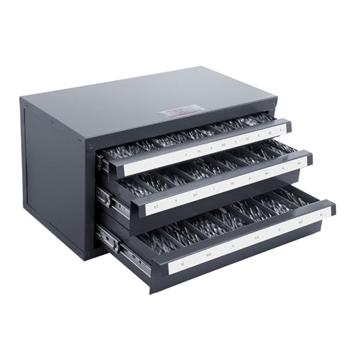 VEVOR Borrkronsdispenserskåp, tre lådor borrkronor organiseringsskåp för 1/16 tum till 1/2 tum, stålborrdispenser organiseringsskåp med etiketter, stapelbar borrdispenser för förvaring av borrkronor