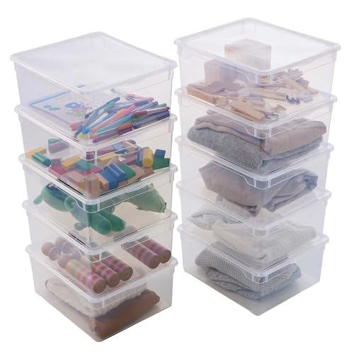 SUNDIS View Box plastförvaringslådor med lock, 11 st, 17 liter, stapelbar, perfekt för förvaring av skåp, kontor, tvättstuga, badrum