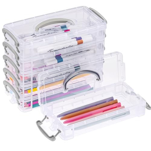 BTSKY 6-Pack stapelbar genomskinlig pennlåda, förvaring för kontorsmaterial, organiseringslåda, förvaringslåda för pensel, målningspennor, akvarellpenna, behållare för ritverktyg
