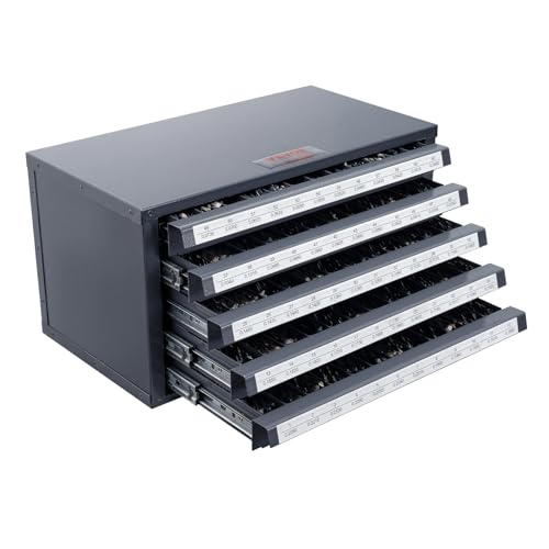 VEVOR Fem lådor 1 till # 60 stål organiseringsskåp med etiketter, stapelbar dispenser för förvaring av borrkronor, grå med orange struktur