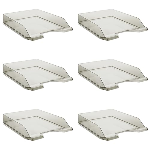 DONAU Brevfack standard transparent grå/6 stycken – A4/brevkorg modern och stapelbar förvaring/transparent glasklar/skrivbordsförvaring/polystyren