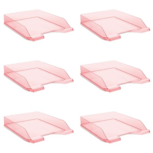 DONAU Brevfack standard transparent röd/6 stycken – A4/brevkorg modern och stapelbar förvaring/transparent glasklar/skrivbordsförvaring/polystyren
