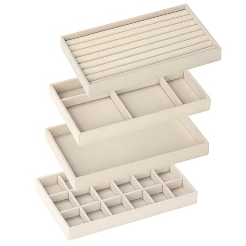 Domkan smyckesbricka, smyckesorganisatör, smyckeslåda, smyckesinsats för lådor, smyckesbricka, stapelbar, för förvaring och presentation (beige)