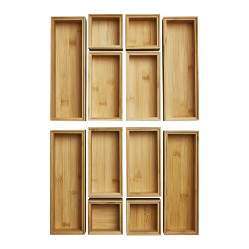ORGA-BOX BAMBOO förvaringslåda 12-delar (oljad, 3 storlekar 85/171/257 x 85 x 50 mm) stapelbar förvaringslåda för kökslådor badrum och kontor