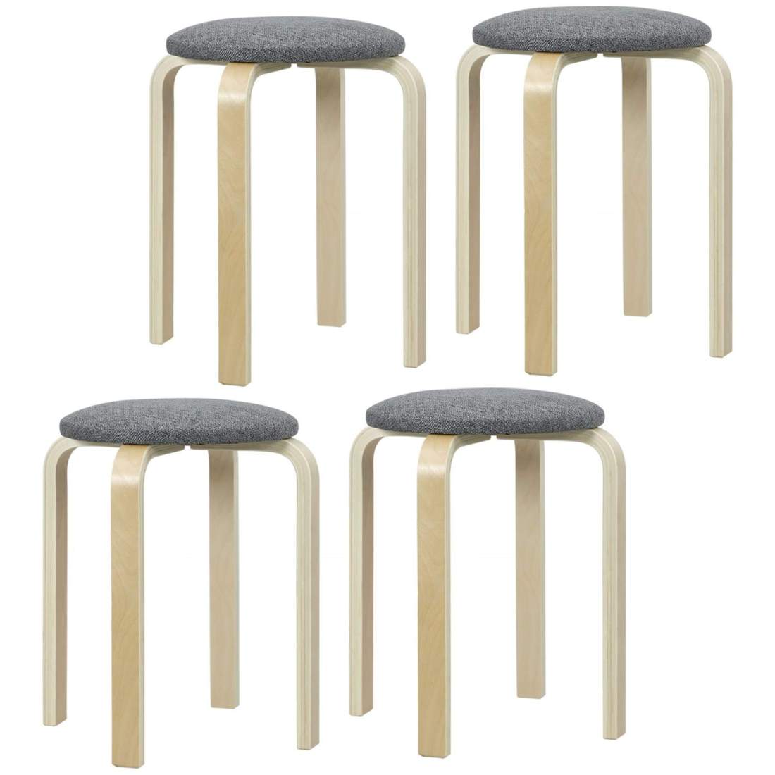 YMYNY 4 st rund pall i massivt trä, skobyttspall, omklädningspall, liten pall, stapelbara pallar för vardagsrum, matsal, kök, klassrum, 27 × 27 × 45 cm naturlig färg HBD026N-4